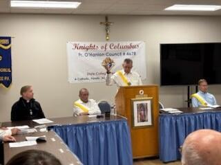 Knights held the Knights of Columbus St. Joseph Pilgrim Icon Mass on December 12th. Our Pastor and Brother Knight Fr. George Jakopec was the celebrant and Brother Knight Dcn Dave Lipinski assisted. The readings were taken from the S. Joseph Icon Pilgrim Program as was the litany of St. Joseph done after Mass. The St. Joseph Icon was received from the St. John 23rd Council of Port Matilda (Good Shepherd Parish) and was delivered to the Huntington Council (Our Lady of Fatima).