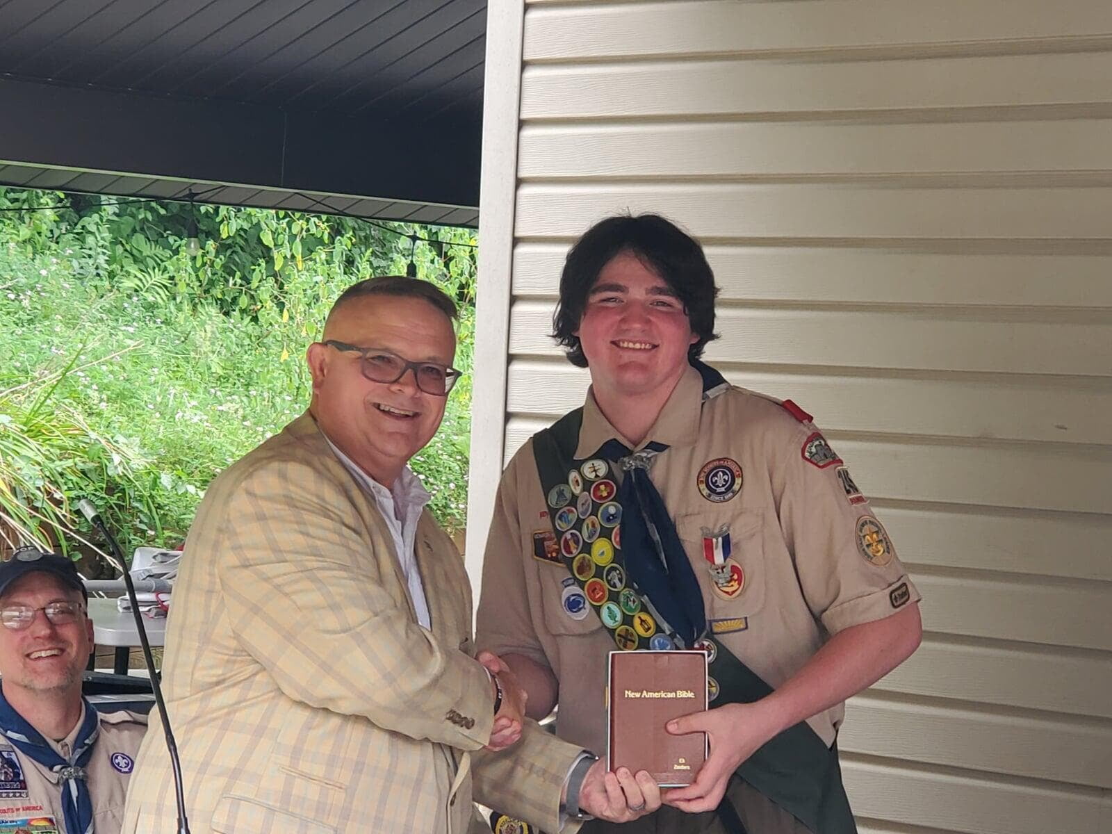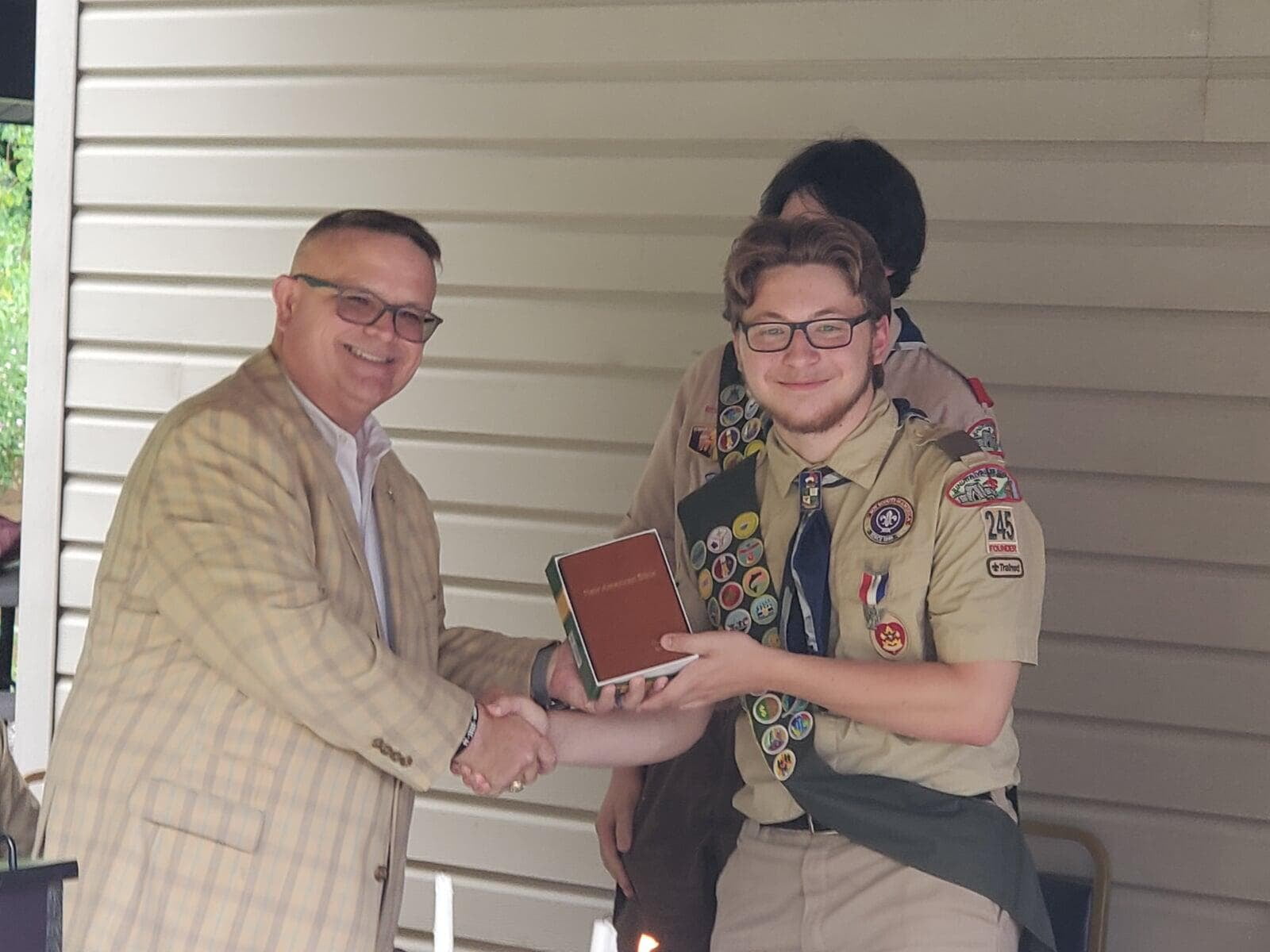 Boy Scouts of America Troop 245 held a Court of Honor at the American Legion Post 245 for two Scouts becoming Eagle Scouts. Christopher Smerbeck and Eli Zeiders. Christopher's project was a cookbook and Eli's was improving signage at Rothrock State Park. Our Council has supported Scouting in various ways and currently provides name emblazoned bibles to those who become Eagle Scouts. It is great to see these young men excel at Scouting and all the good things that come from their work and example.