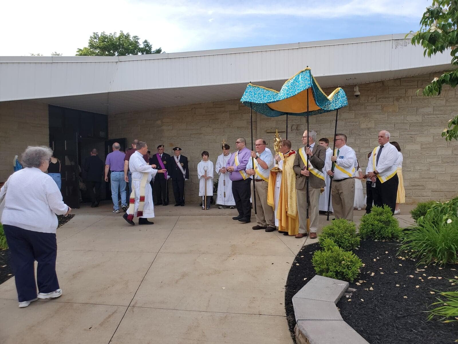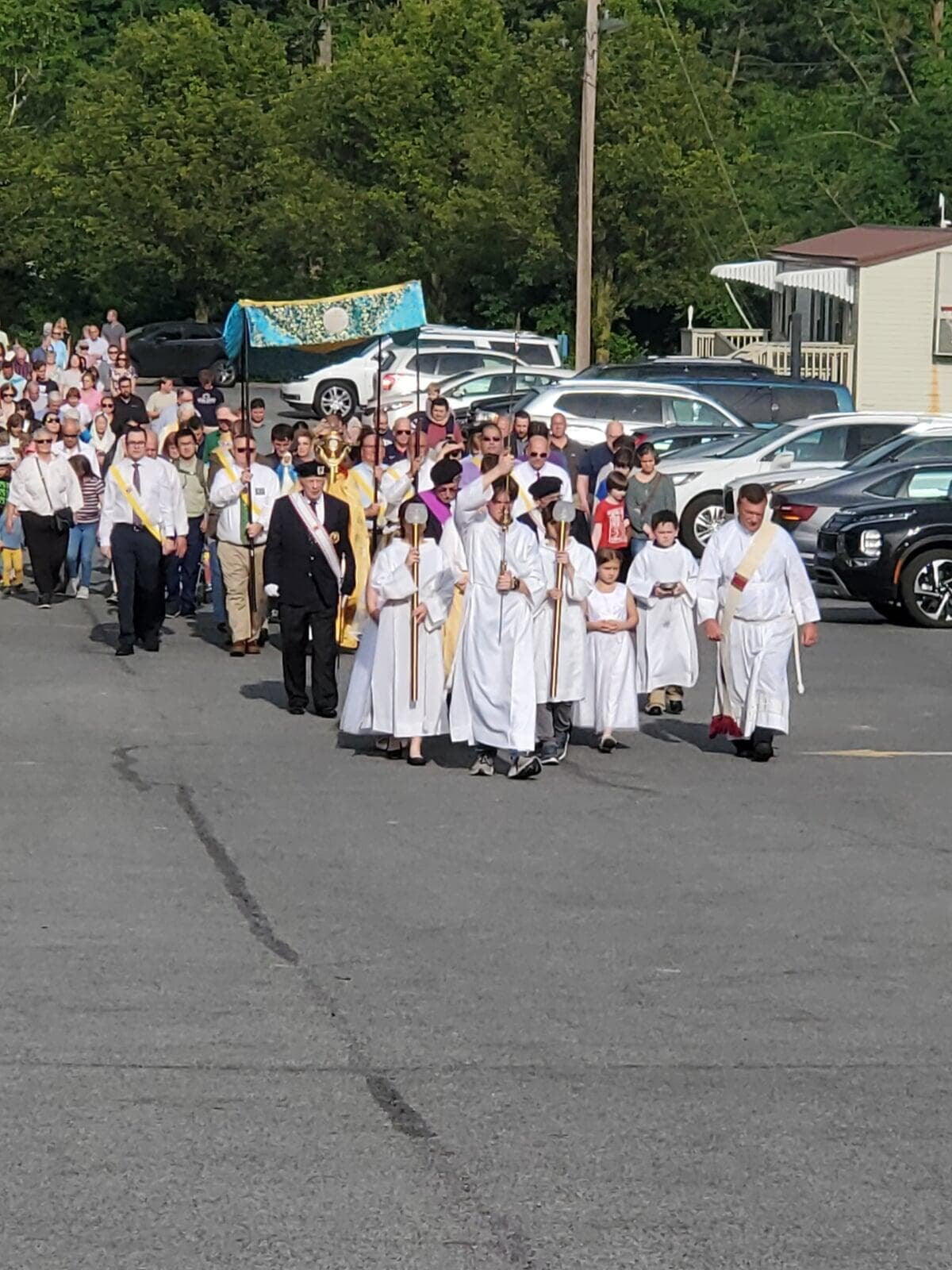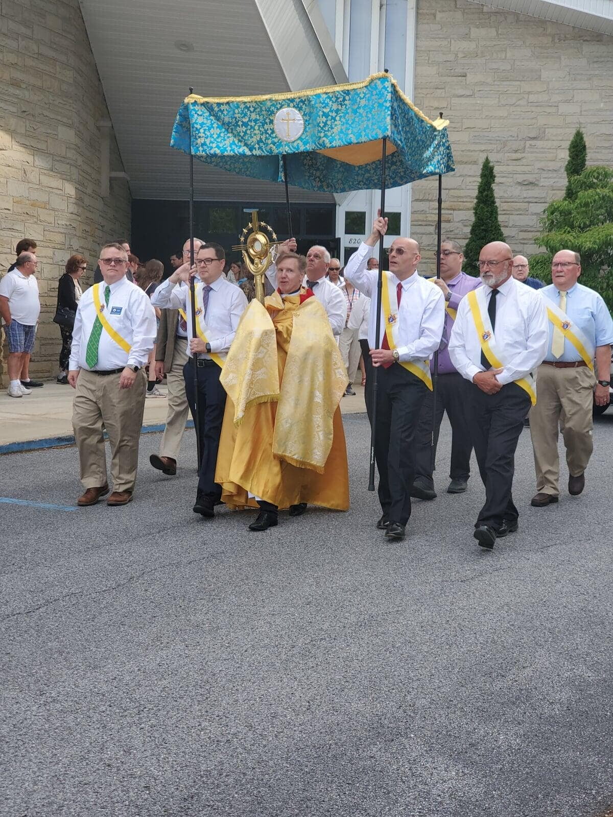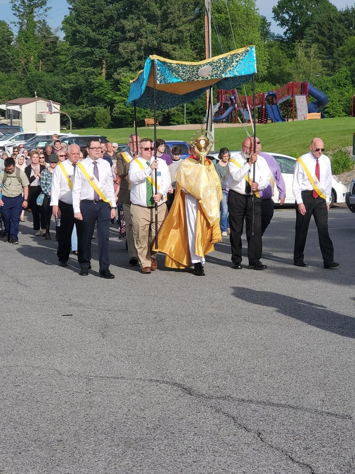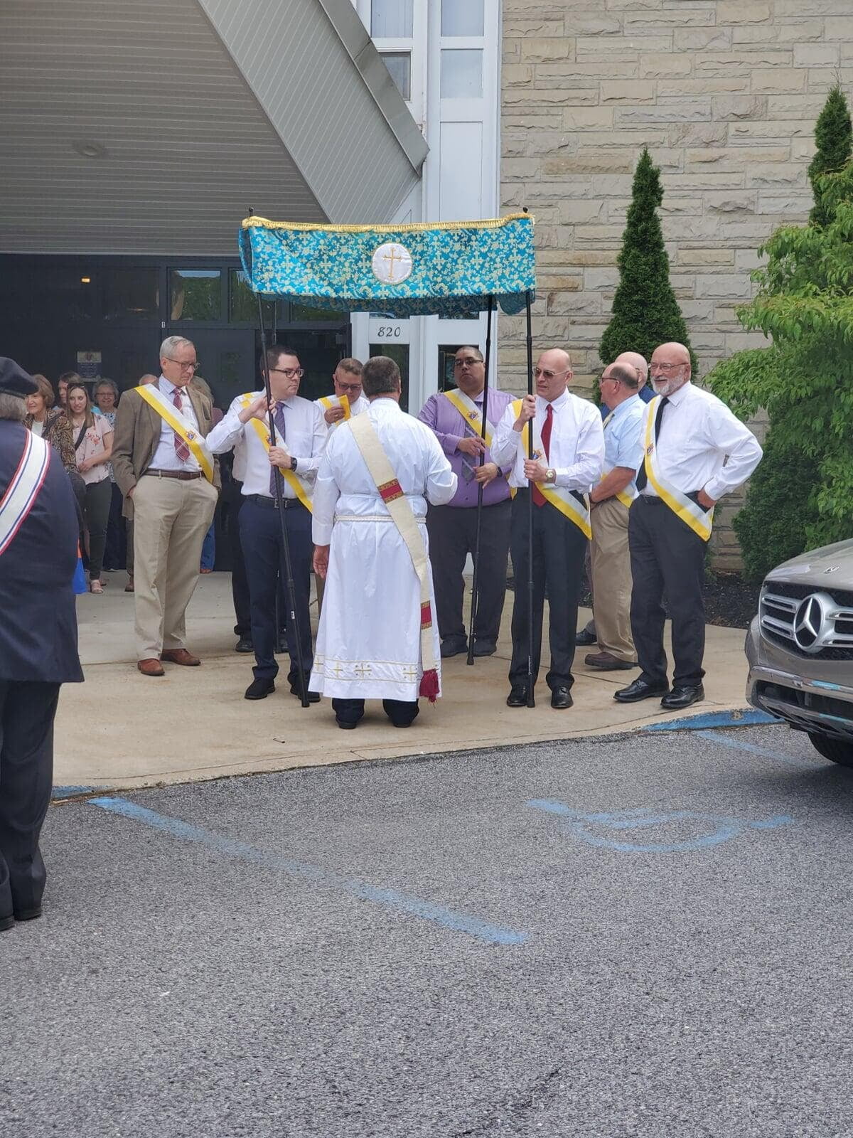 The OLV parish held a Eucharistic Procession after the Corpus Christi vigil Mass on Saturday June 1st. The clergy of the parish asked the Knights be represented and we certainly were! The Fourth Degree Color Corps had an Honor Guard (with two of our Councils Brothers present: DGK Sir Frank E. and PGK Sir Lionel B). We had eight members of our Council take part (PGK Marty M., PGK Joe C. , PGK/FS Dennis M, John K., Mike D., Jose A., Tres Bob K., and GK Brendan B.) Thank you all!