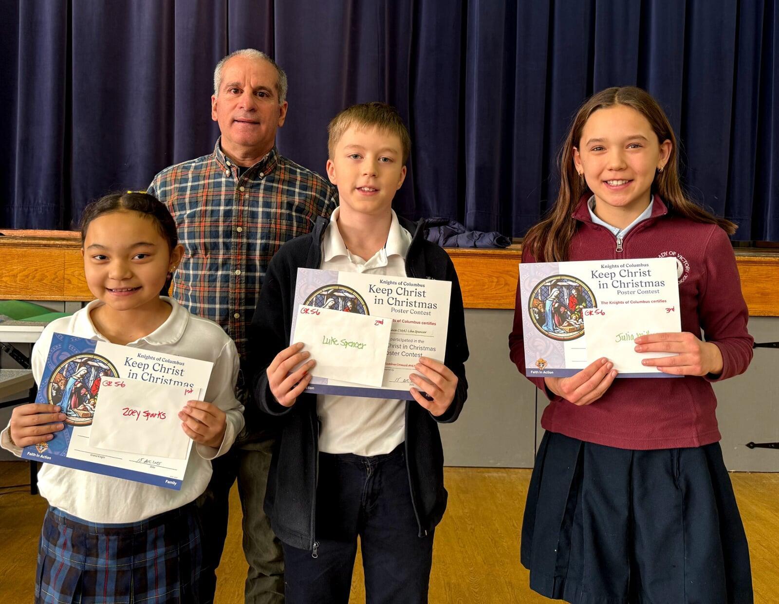 The pictures above range from all oft he posters, to the board of winners, to the winners receiving their certificates. Thank you again to all who participated and to Brother Steve our Family Director for leading this successful endeavor!