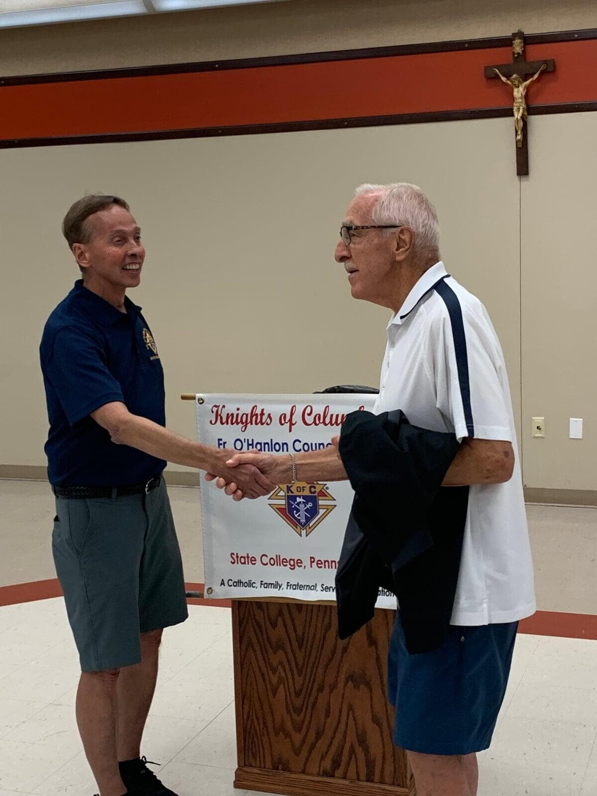 St. Joseph's Catholic Academy Athletic Director, Bryce King, receives a check supporting SJCA Athletic from the Knights. The check is for $1000 and is in support of Catholic Education, specifically in athletics programs assisting the students in being of sound mind and body. The Knights support Catholic Education and Athletics therein, monetarily, and the funds are earned predominantly from the Beaver Stadium Concession Stand (so thanks again to the Concession Stand Team led by Rodney and Steve).