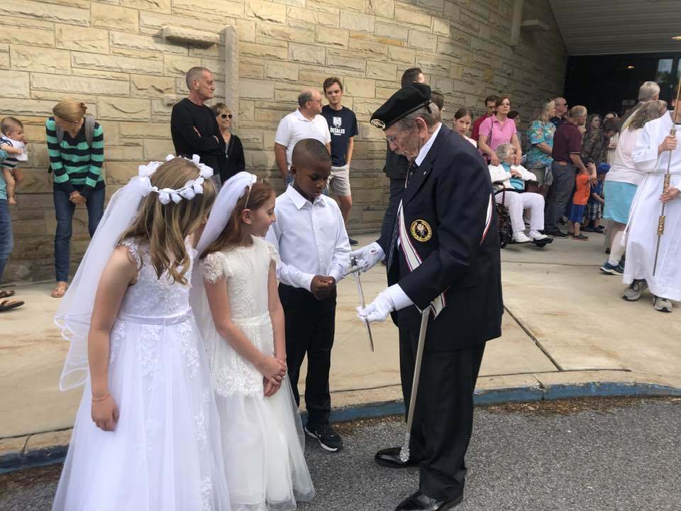 More photos can be found on the Parish fb site (look for DGK Sir Frank showing his sword to the children):