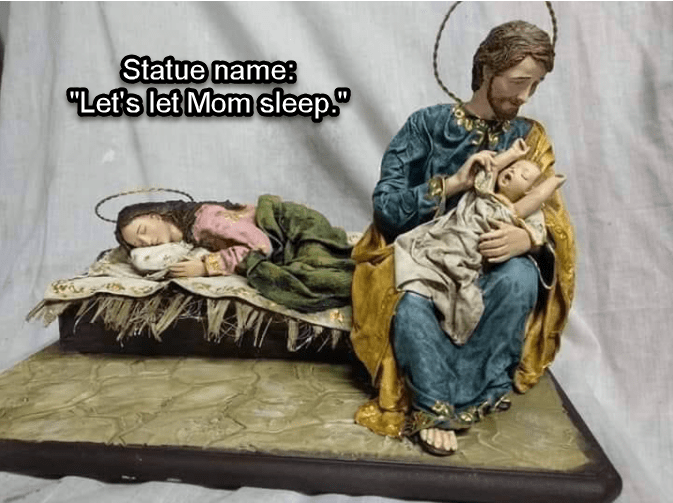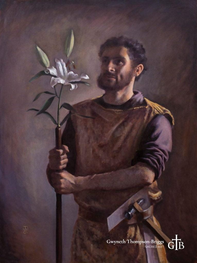 In this and many other depictions of the domestic life of the Holy Family, St. Joseph is portrayed as a man who “sorts” problems in a practical way. He finds solutions by being both brave and prudent. He had to preserve Our Lady’s dignity when she was found to be with child before their marriage. He had to get his family to safety when Herod’s henchmen slaughtered the Holy Innocents. Like the medieval Christian knights who later made arduous journeys to protect pilgrims and sacred places in the Holy Land, St. Joseph had to face danger and deal with it.
