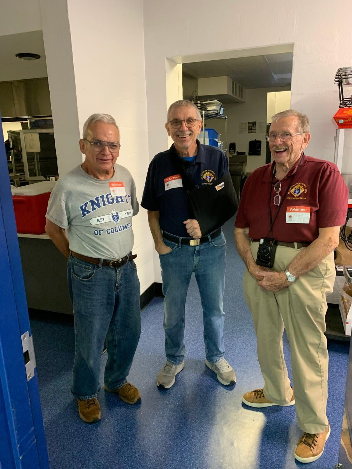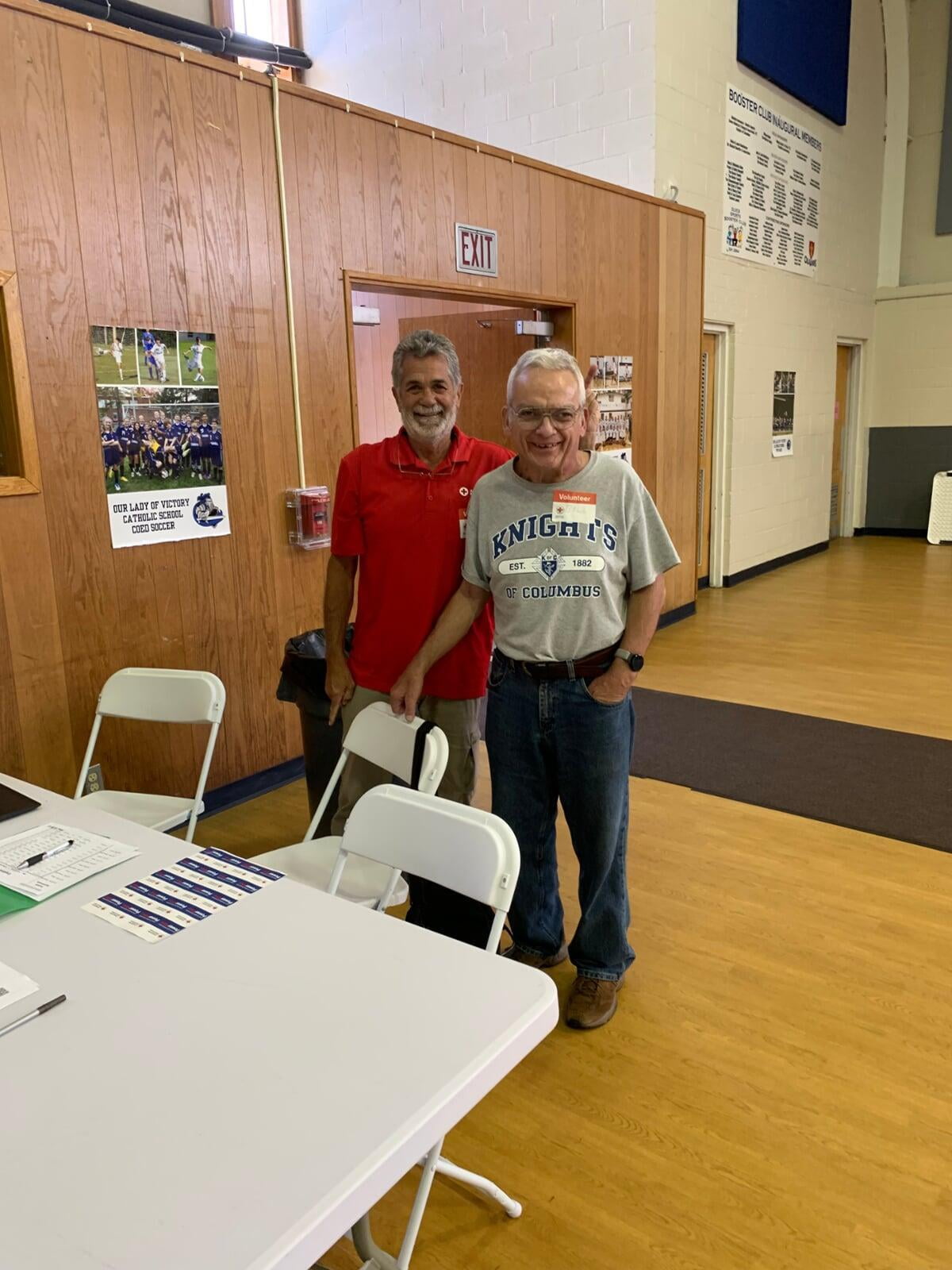 Every six (6) weeks we have extraordinary BROTHERS who step up to ensure the Blood Mobile/Drive is successful each and every time. This month they had to "do a dance" and shift from the Activites Center to the OLV School Gym. The team is led by Mike Berrena and Bill Schiavi but consistent Vols are John Karish, Mark Thorwart, Frank English and Mark Golanoski. This isn't everyone who Volunteers - but most of them were captured in pictures today! Standing - Mike in red, Bill in gray, Frank in maroon, and Mark G. in blue (not pictured John Karish and Mark T.). These Brothers are fantastic! Thank you!