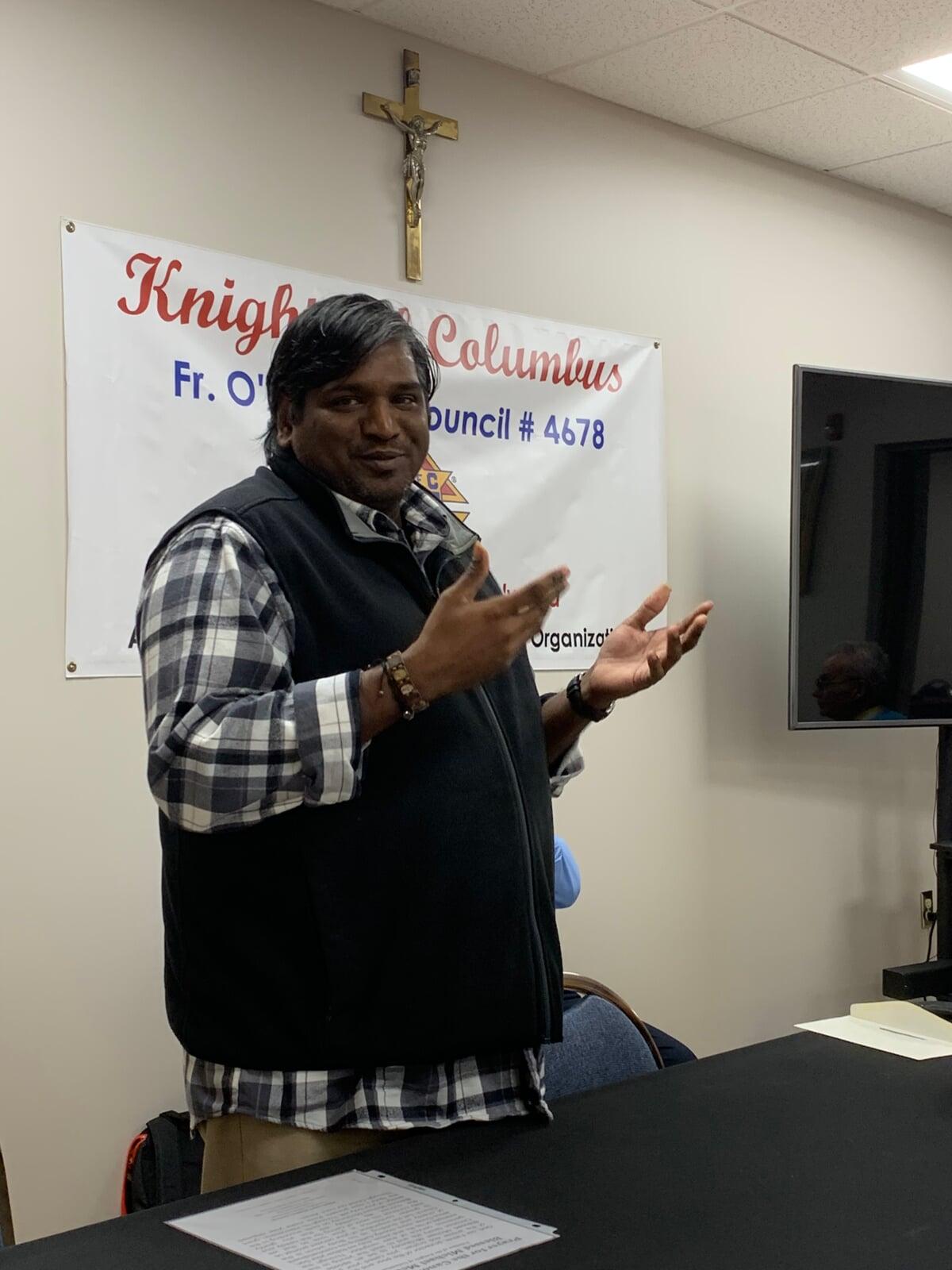 Mark Weakland, a current member of our Council, informs the Council of the work of FOCUS. FOCUS stands for Fellowship of Catholic University Students. FOCUS places individuals at college campuses to evangelize to university students because over 80% of Catholics are reported to lose their faith while in college. FOCUS helps to provide an opportunity and environment for catholic college students to not lose but continue to realize and grow in their faith. FOCUS employees, such as Mark, must raise their own salary. Please contact Mark to learn more at mark.weakland@focus.org .